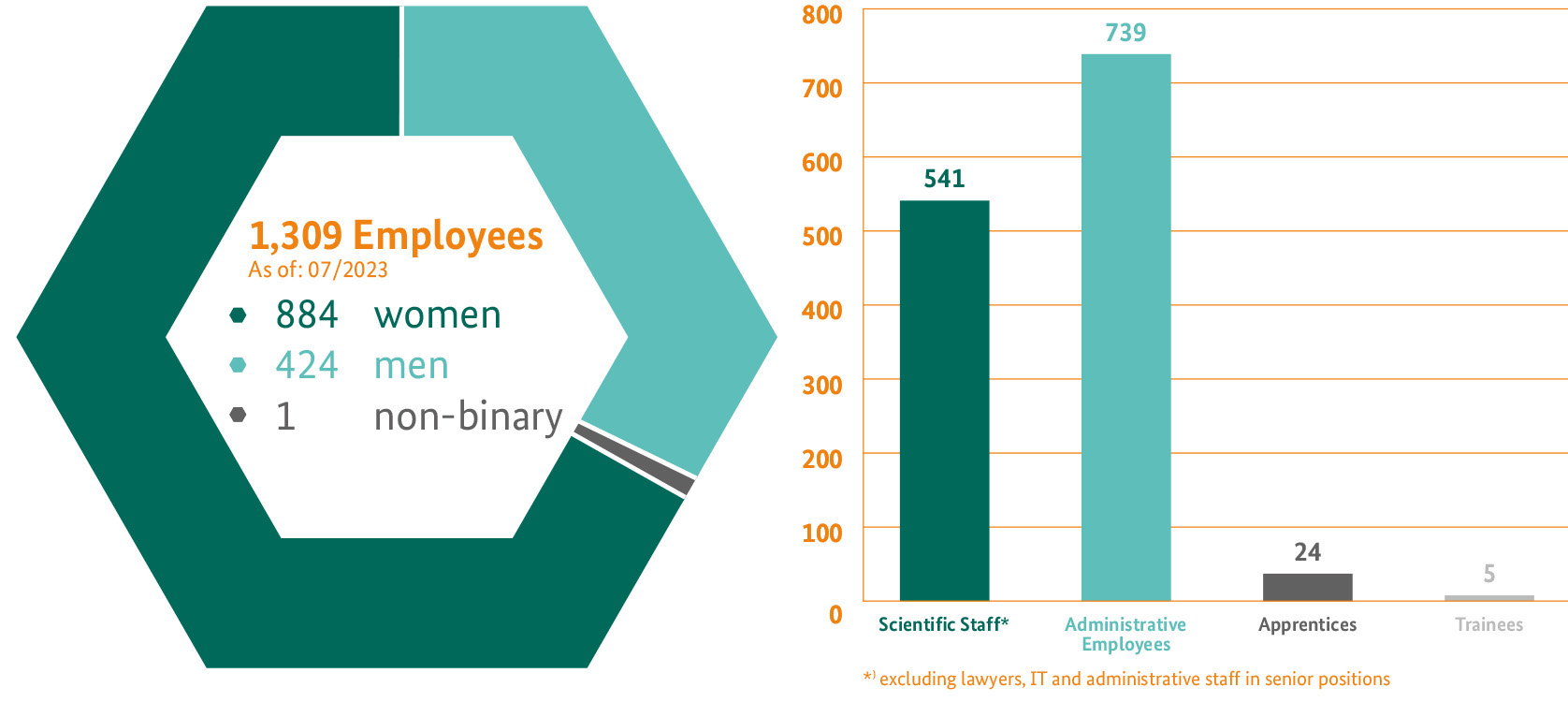 Of the scientific staff members, around 31 percent are pharmacists; around 22 percent are medics; almost half (around 47 percent) are made up from scientific professional categories.